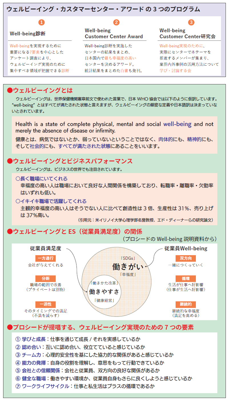 プロシードでは、アワード後も参加企業との研究会を続けているとのことで、そこで話題に上ったのが、あるセンター長のポリシーでした。「20 以上のカスタマーセンターがある組織の中で、2 年連続してトップクラスの販売成果とES 診断結果を出したセンターがありました。そのセンター長が自ら、毎日、コミュニケーター全員と話をするというのです。会社からの要望はコミュニケーターにとって必ずしも喜ばしいものばかりではなく、負担や不満につながる場合もあります。そういうお願いをSV やリーダーに押しつけるのではなく、直接、会社の考えを伝えて、さらにコミュニケーターの意見を聞くようにしているとのことです。そのセンター長が他のセンターに異動になると、そこがまたトップクラスの成績を収めるとのことで、経営層も含めたマネジメントの意識と取り組みが、ウェルビーイング実現に不可欠であるとわかる事例だと思います」と根本さんは説明します。